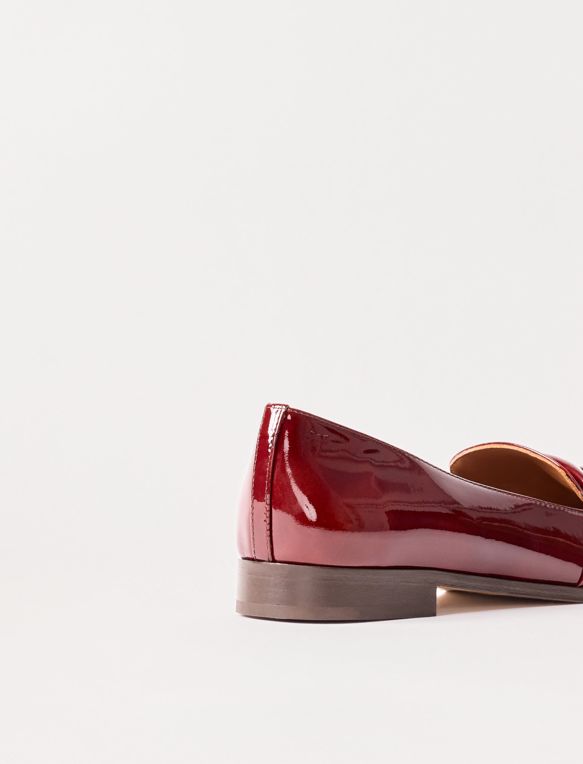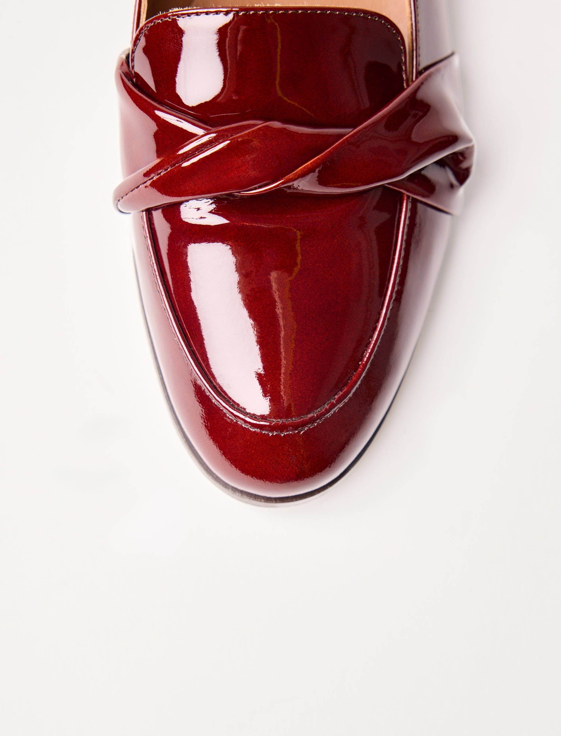 - Mocasins en cuir de vachette grenat verni avec bandeau torsadé en cuir verni