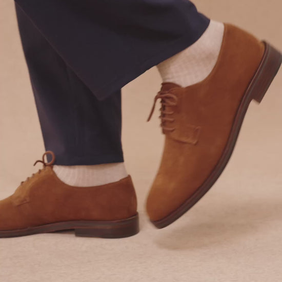 - Derbies en cuir suède camel