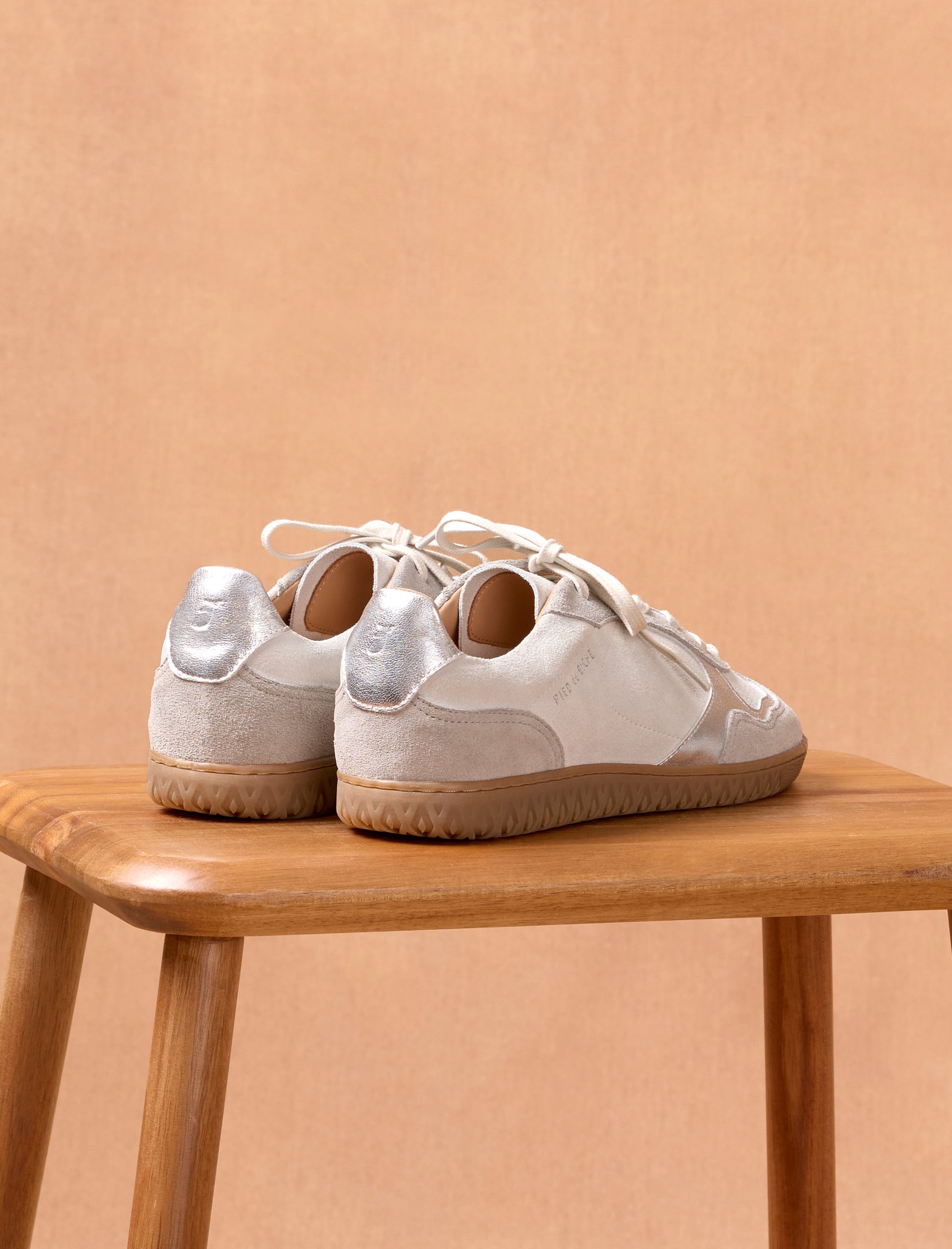 Pied de Biche vous présente sa nouvelle paire de sneakers rétro en cuir velours et agrémentée de détails en cuir lamé argent. Dotés d'une semelle fine, nos souliers sont d'un confort absolu pour une utilisation quotidienne. Leurs lacets, certifiés OEKOTEX, offrent une finition impeccable à cette sneakers au style vintage.