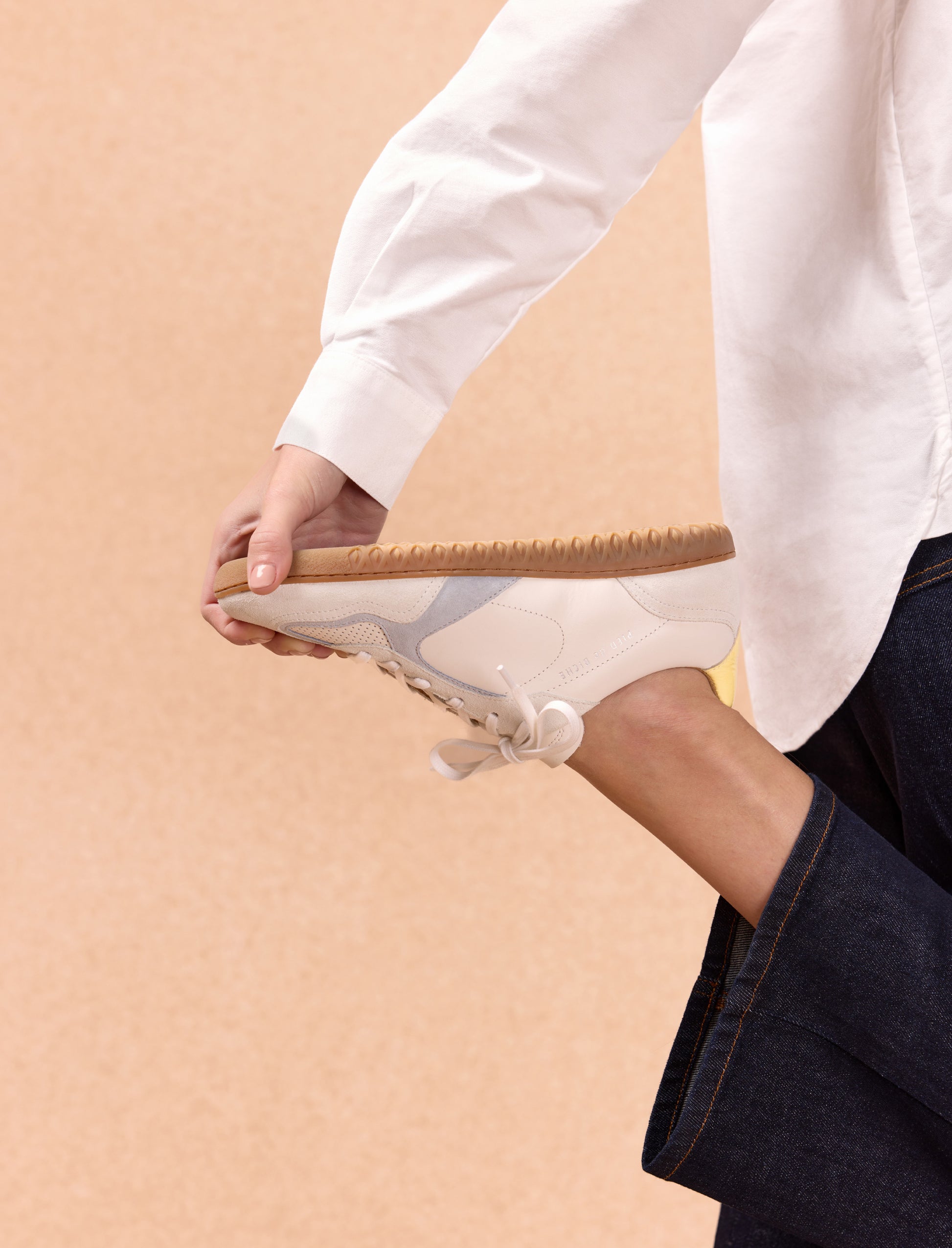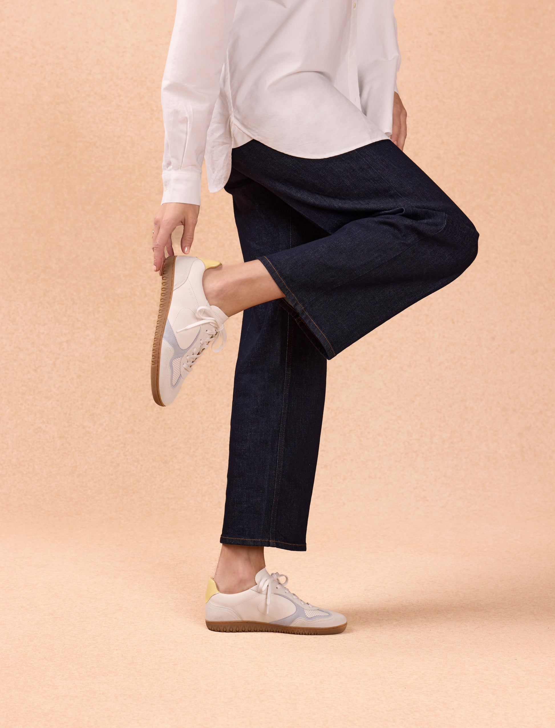 Notre emblématique sneakers rétro de Pied de Biche se décline cette saison en cuir lisse blanc et en cuir suède et verni aux couleurs pastel. Dotée d'une semelle fine, elle assure un confort absolu au quotidien. Les lacets certifiés OEKOTEX complètent cette sneakers au style vintage avec élégance.