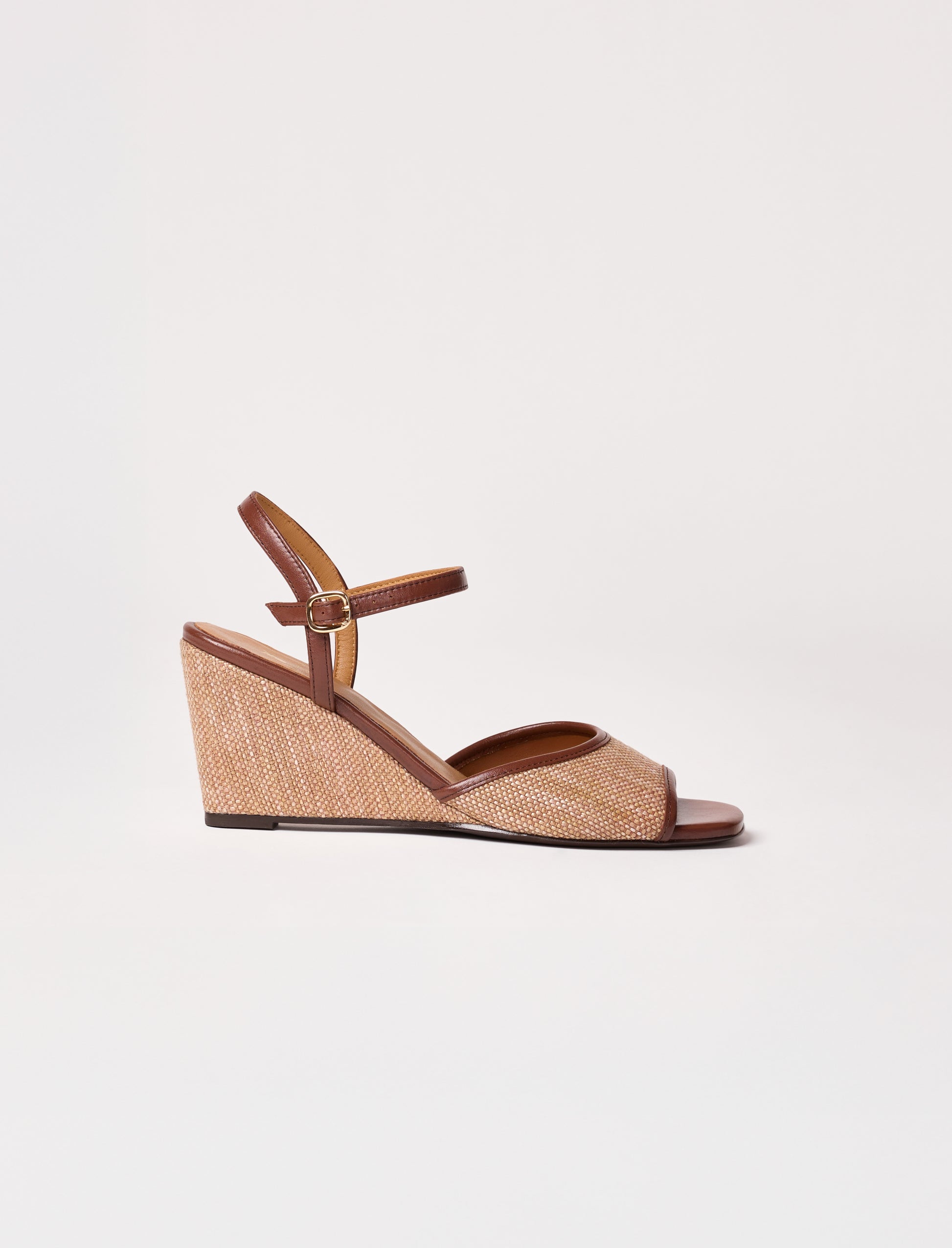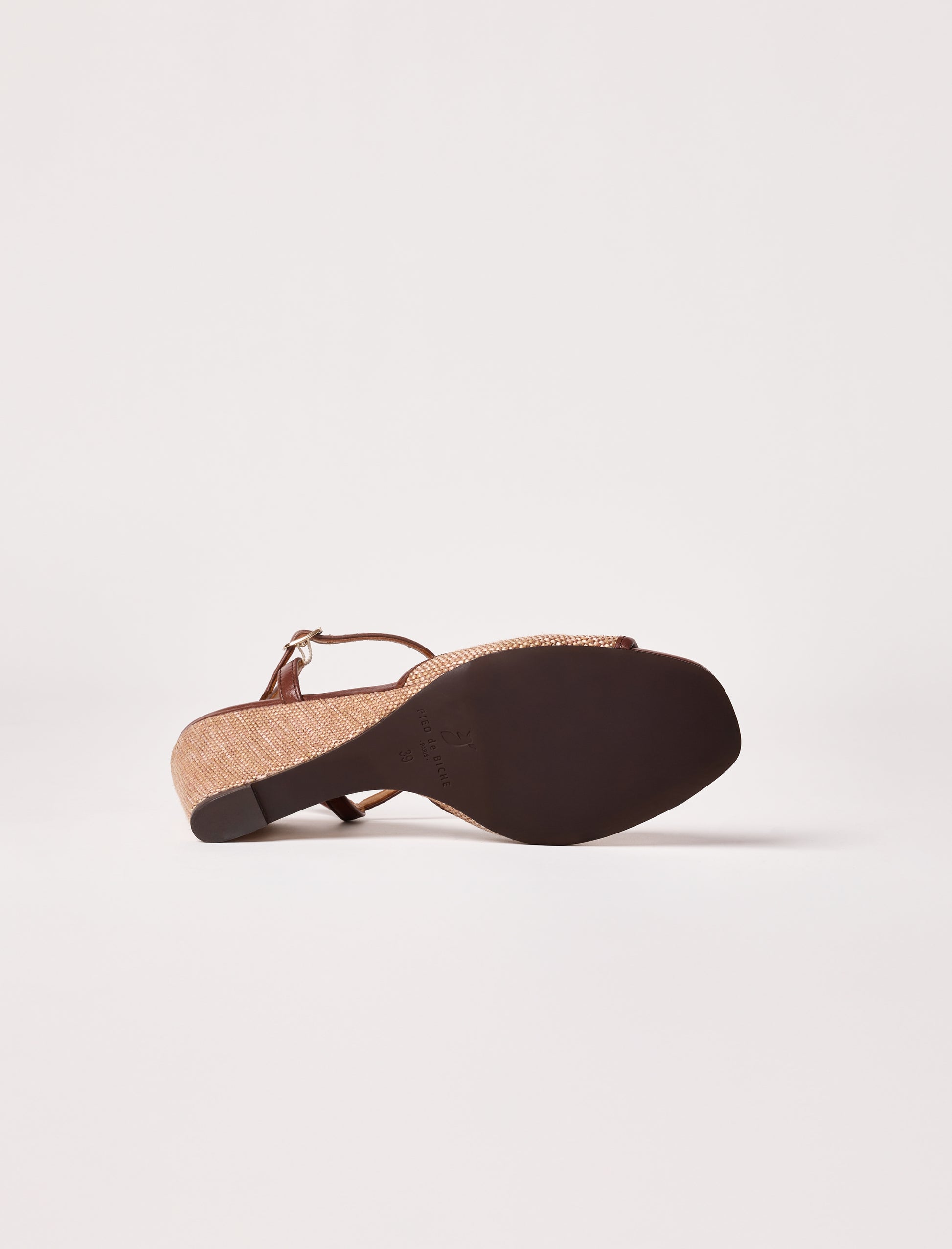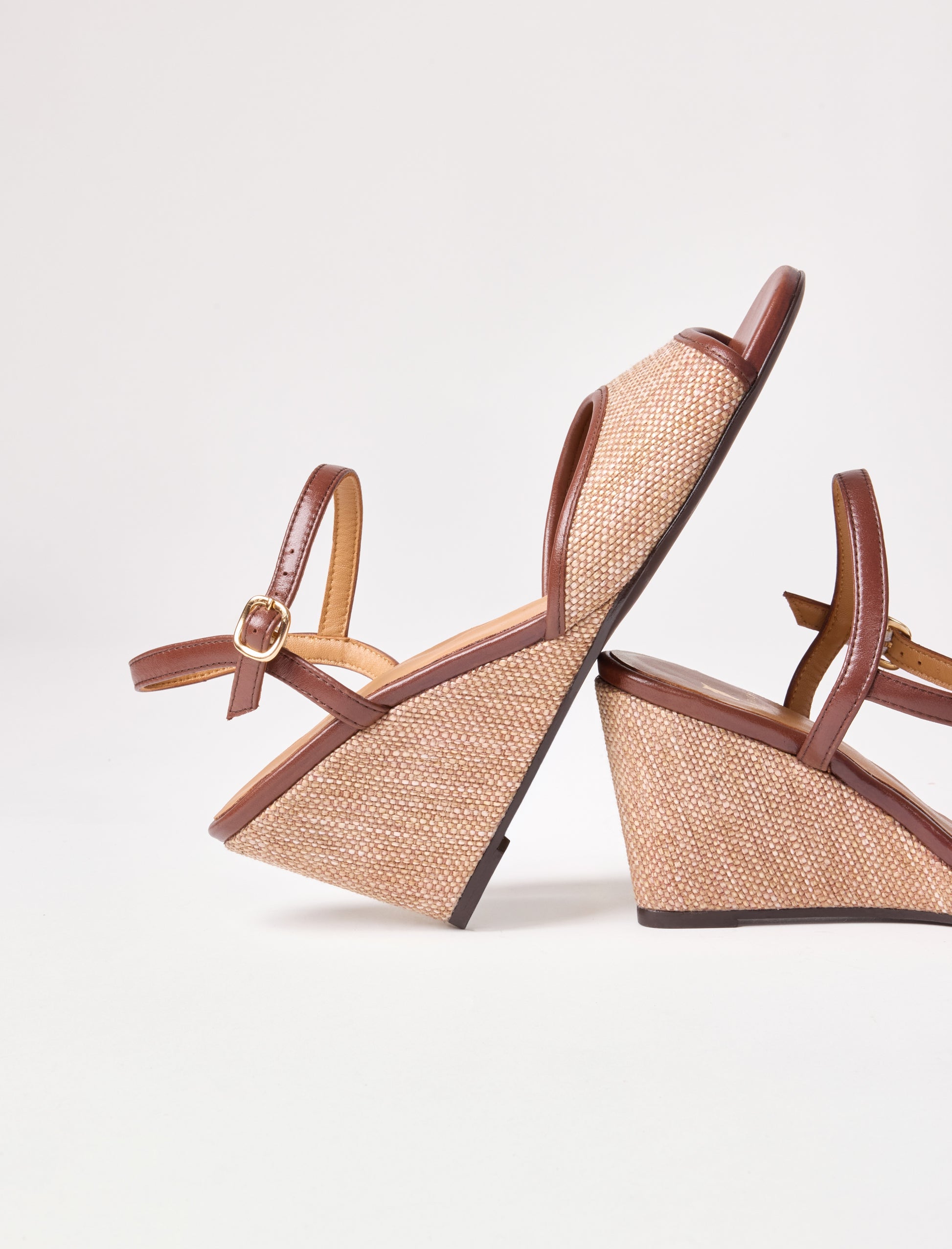 - Sandales à talons compensées en raphia naturel