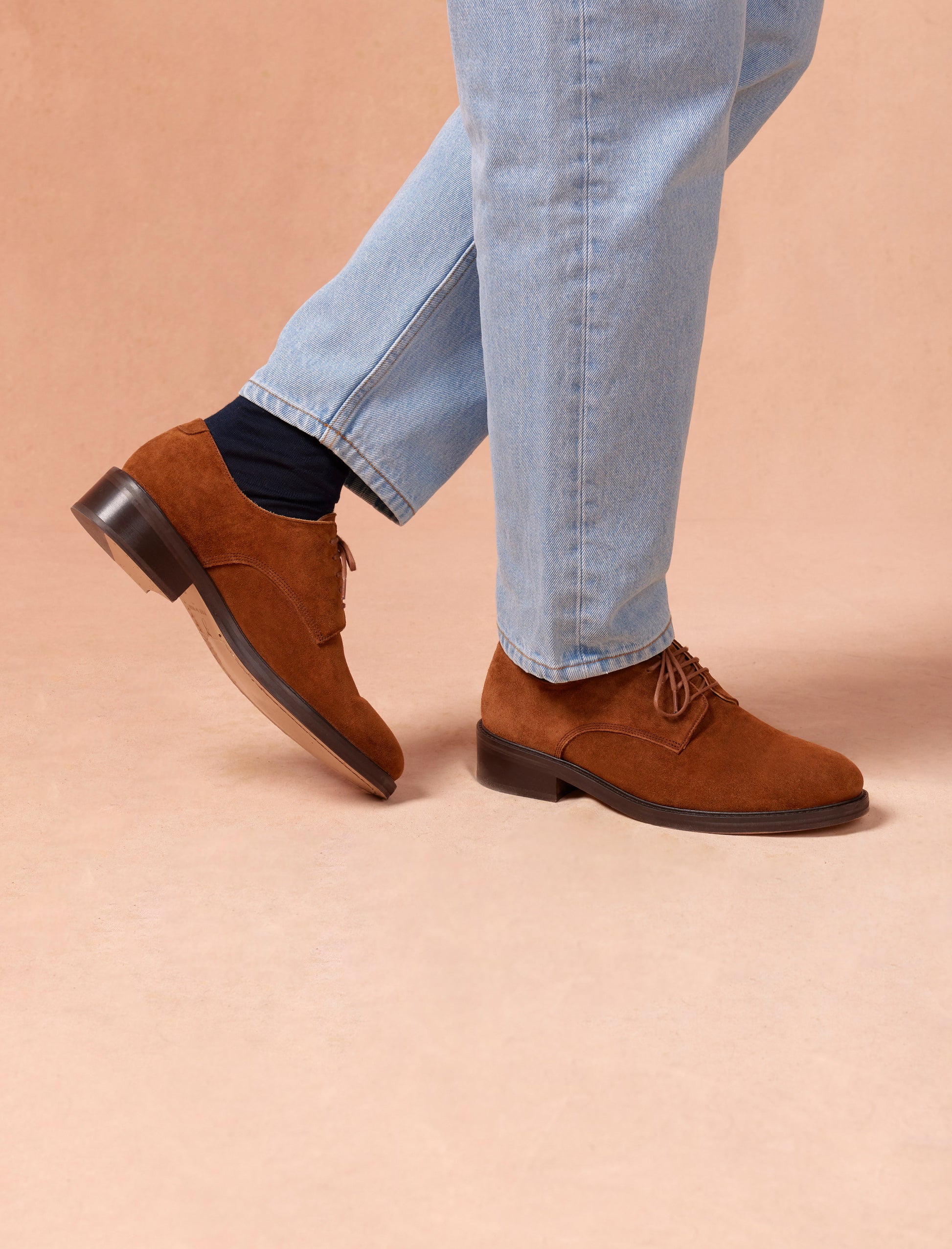 - Derbies en cuir suede tabac