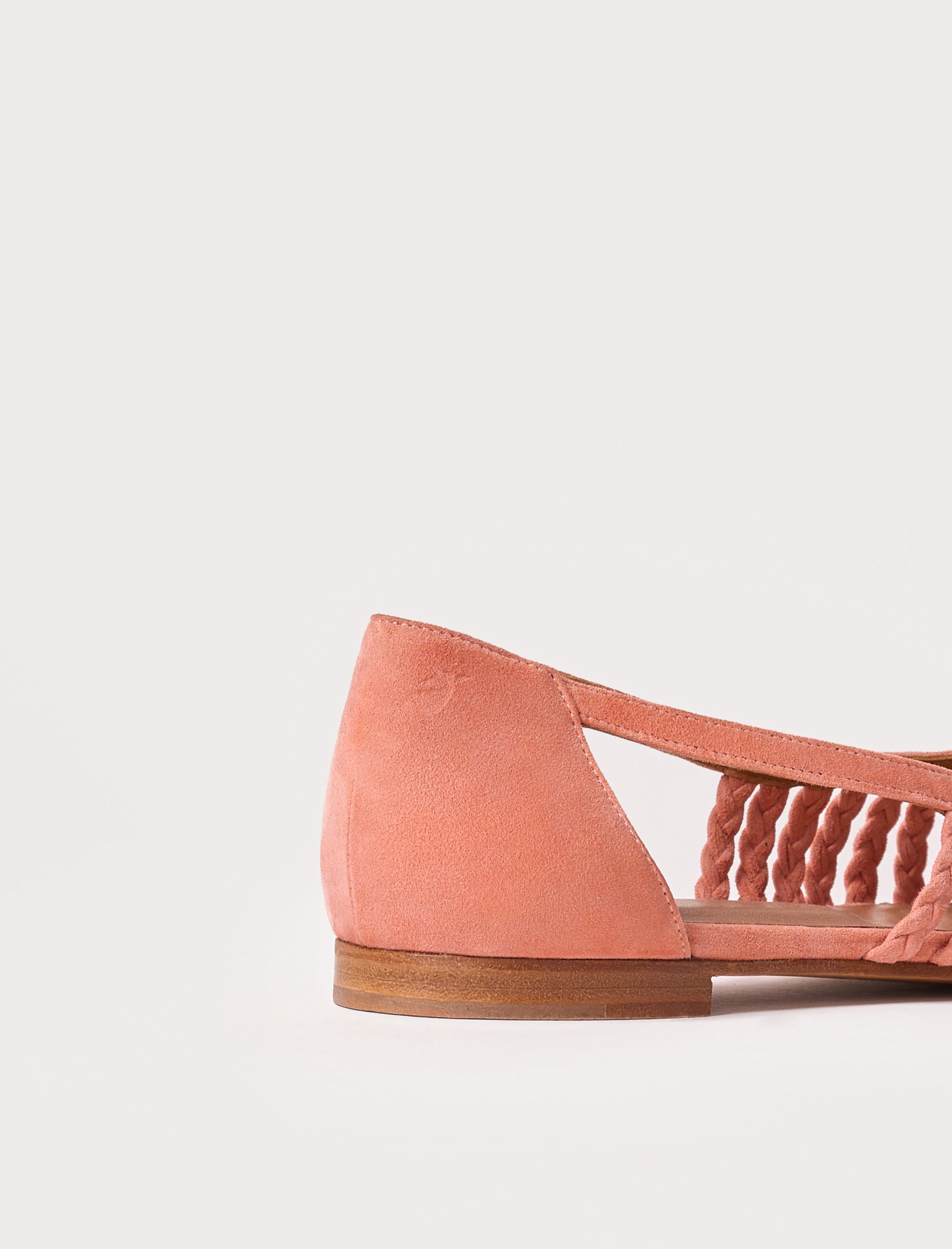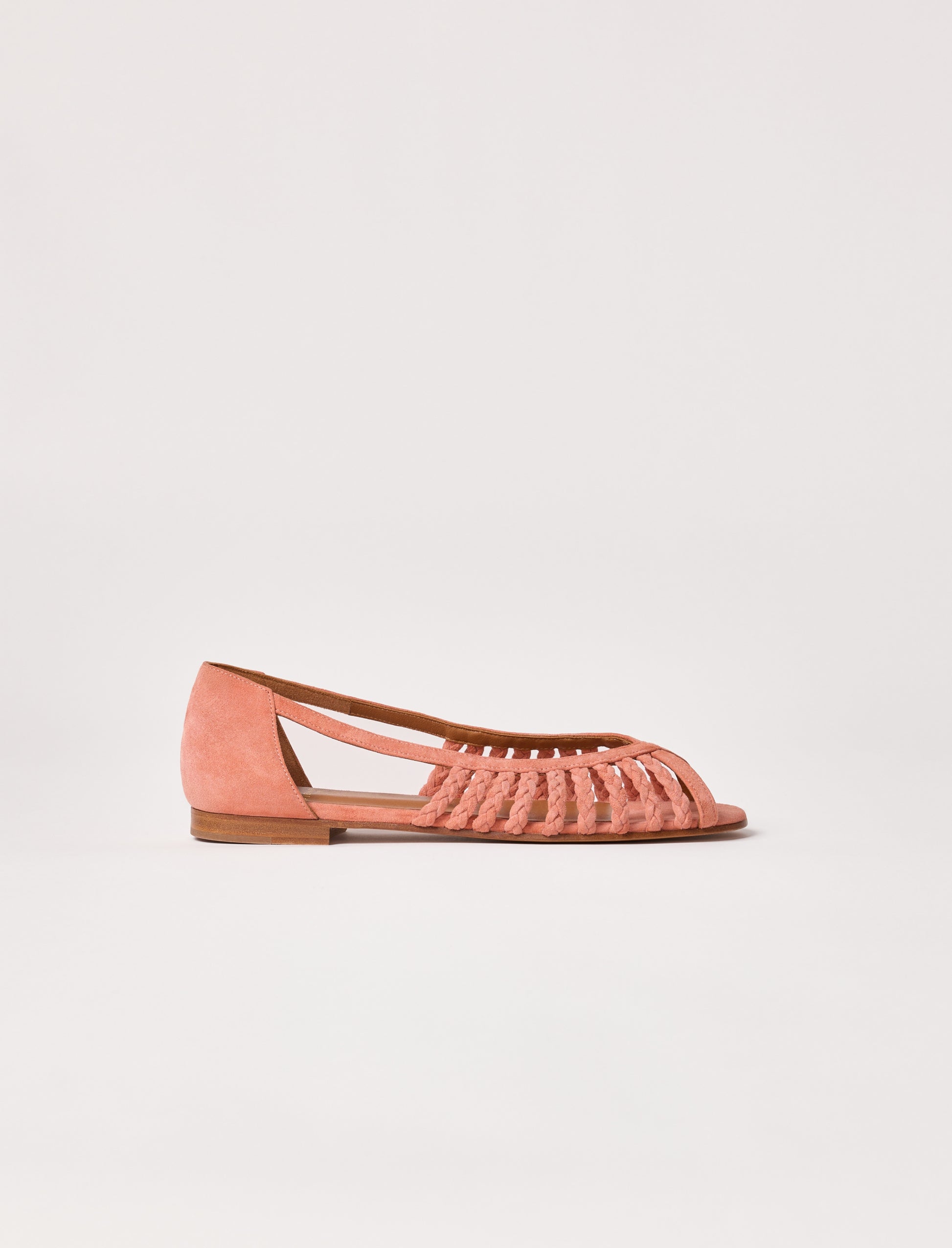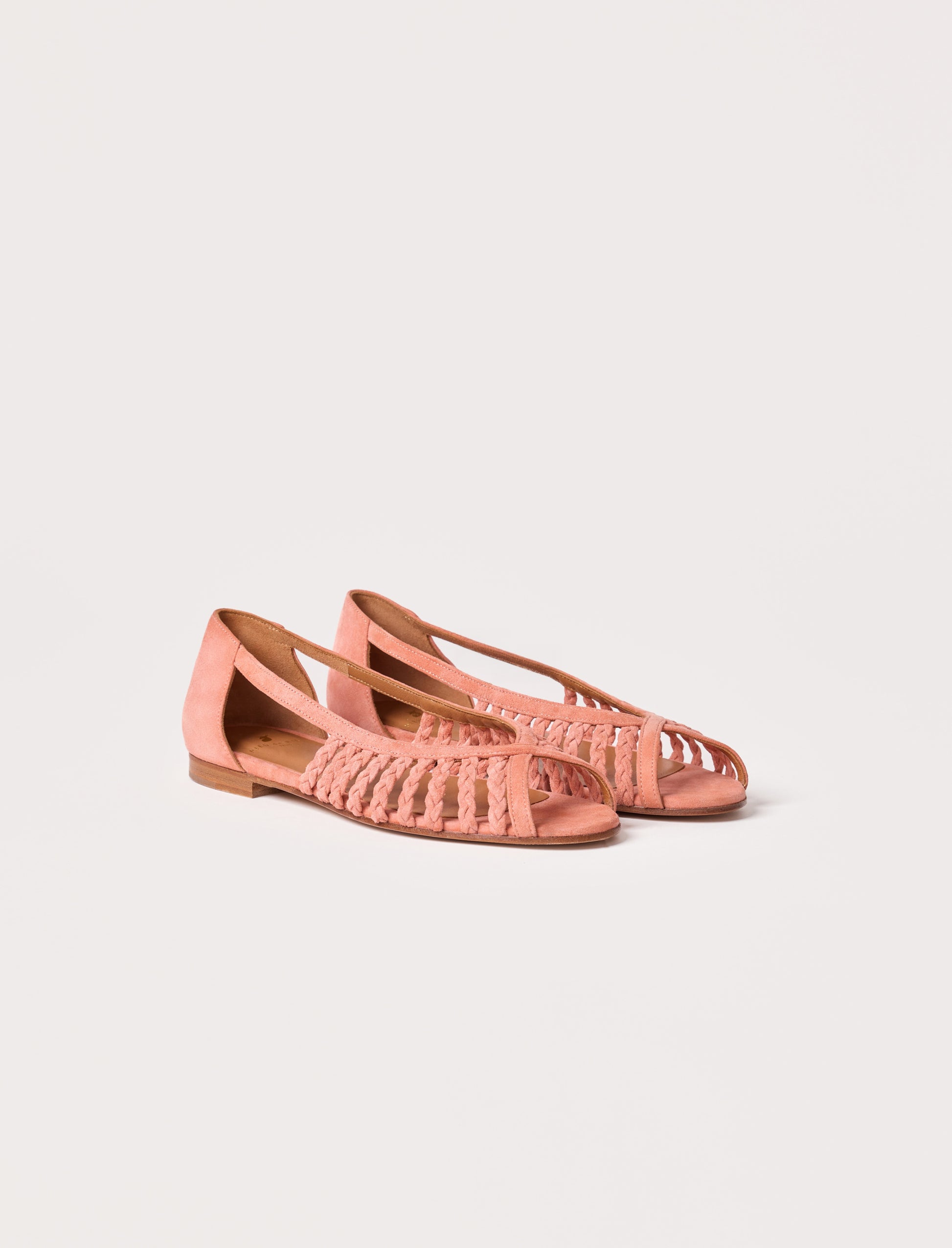 - Sandales plates en cuir suède de chèvre, ornées de brides tressées sur le côté