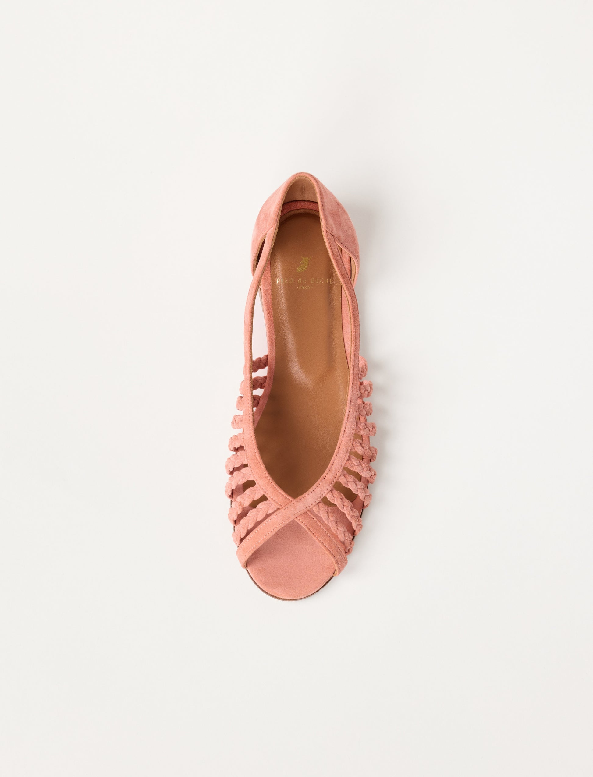 Résolument moderne, la sandale Violette séduit par sa silhouette épurée. Ses brides tressées et son décolleté en V dessinent un pied féminin et raffinée. Déclinée en cuir lamé champagne ou en cuir suède rose poudré, la sandale Violette apporte une touche lumineuse à toutes les tenues d’été.